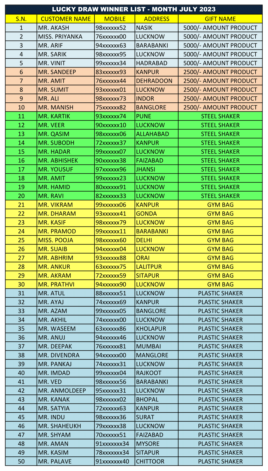 Lucky draw winner list July 2023